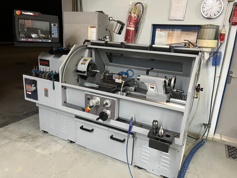 Stangendurchlass 45mm / Revolver 10-Fach / X-Achse 120 + 20mm / Z-Achse 290mm / Reitstock 150mm